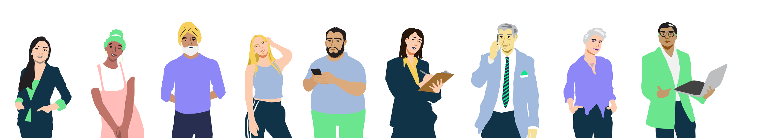 The illustration process took a few rounds, until we landed on a style that was clean, approachable, an diverse.